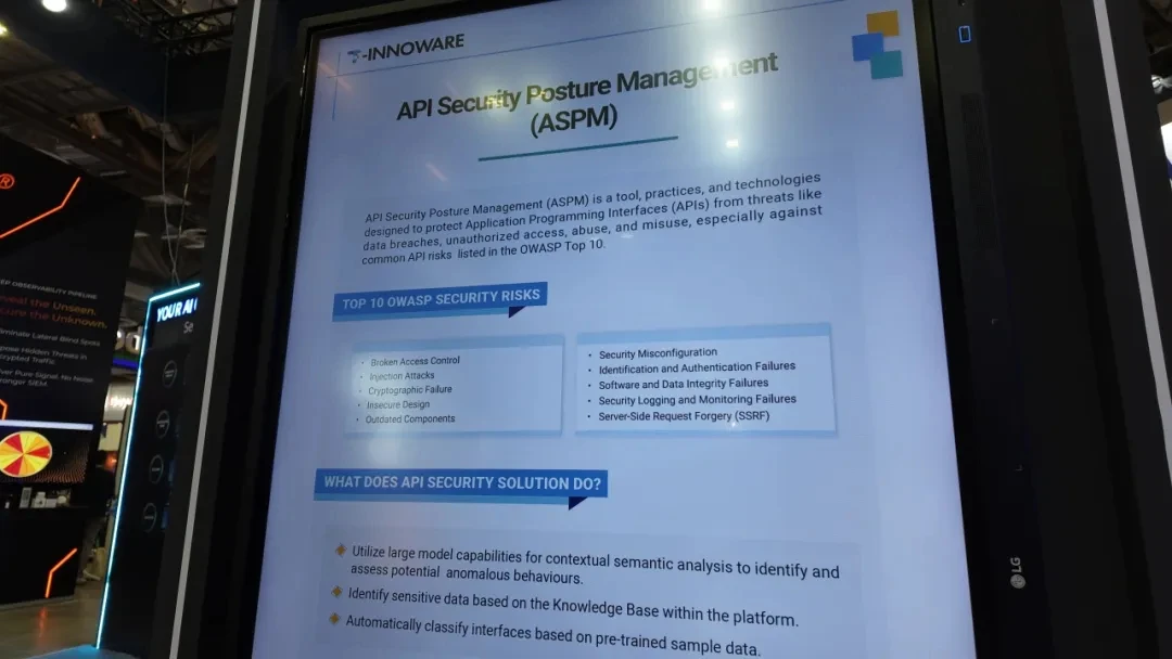 针对企业数字化中API(应用程序接口)常遇的“资产不清、漏洞难查、泄露难溯”等问题,T-INNOWARE现场展示的ASPM方案给出了贴合全球合规标准(如GDPR、《中华人民共和国数据安全法》)的一站式解决思路。