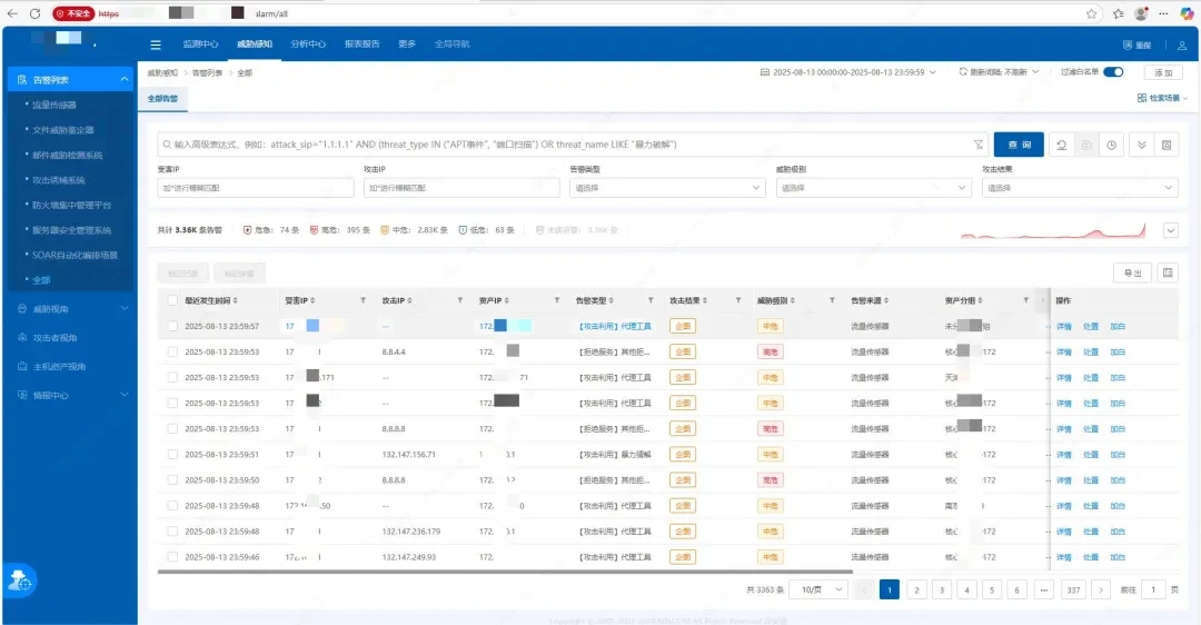 ◎客户处某安全威胁分析平台每日实际告警展示
