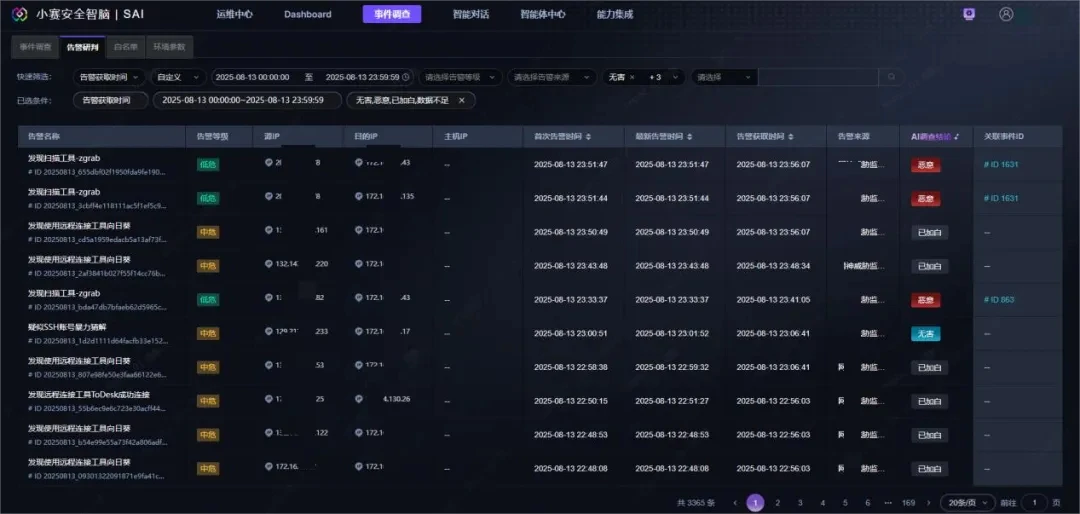 ◎小赛安全智脑(SAI)针对海量告警进行可信分析与安全事件研判